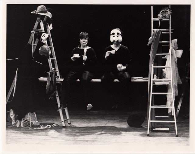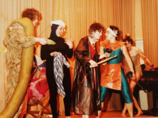 When I came to London, one thing I was interested in was learning a diversity of theatre modalities, internationally based. I went to performances and workshops of women from various countries, including studying for a bit with Anu Kapoor from whom I learned a style of theatre called ram-lila from South India. Associated with my MA, I gathered a motley collective of fabulous dykes who became Free Range Women. Together we devised Sprouts Came First which was partially based on that style of theatre.