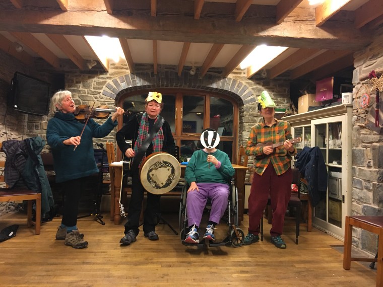 Zayeet: Our latest theatre collective, Keep Earth Company, grew out of a lesbian gathering we attended in West Yorkshire in August 2018. At the planning session, asked for suggestions of workshops and activities I suggested creating a play. Another woman wanted to run a song-writing workshop. So we joined forces and with interested women devised a musical. We combined our passion for animal spirits, mycorrhizal networks of trees, and finding a frequency to end patriarchy.